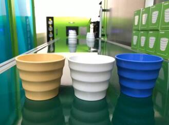 ????????伊之密DCIM在線配混直接注塑成型方案,直擊“循環經濟”熱門話題,現場生產可生物降解塑料咖啡杯。