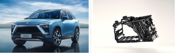 圖左:?車身流暢、色彩明快的新一代新能源汽車NIO ES8將亮相北歐化工和博祿以及諾瓦化學在2019 K展的聯合展臺。