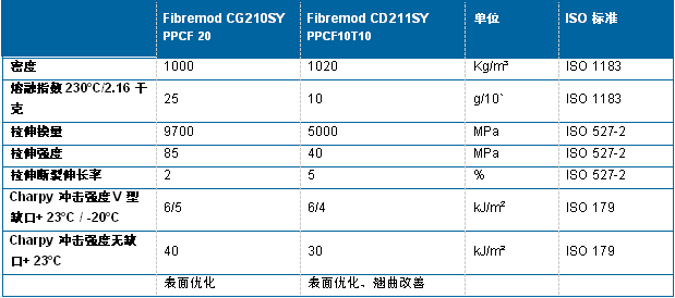 Fibremod? CG210SY Fibremod? CD211SY機械性能一覽表