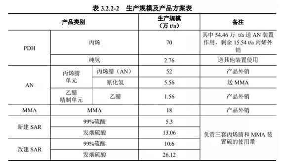????????據介紹,該項目主要建設內容為:擴建項目新建70萬t/a丙烷脫氫裝置、兩套26萬t/a丙烯腈裝置、兩套9萬t/a MMA裝置及一套21萬t/a SAR裝置,同時改建現有項目中一套23萬t/a SAR裝置,擴建項目所有生產裝置均在斯爾邦預留用地上。