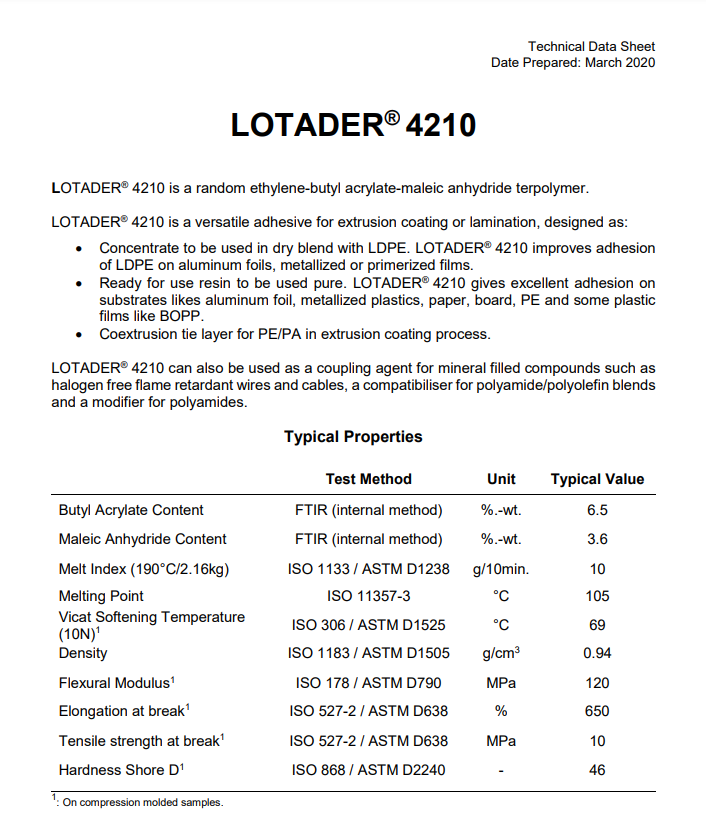 • 阿科瑪 EBA 4210 良好的附著力 層壓板 增粘劑 良好的粘合性 物性表, 阿科瑪 EBA 4210 良好的附著力 層壓板 增粘劑 良好的粘合性 產品參數,阿科瑪 EBA 4210 良好的附著力 層壓板 增粘劑 良好的粘合性 性能表,阿科瑪 EBA 4210 良好的附著力 層壓板 增粘劑 良好的粘合性 出廠報告, MSDS,, 物質安全資料表, UL黃卡,{ SGS報告, RoHS, 食品級認證, NSF飲用水標準, 產品資料, 產品性能, 出廠報告, 原廠原包, 代理商, 熱變形溫度, 熔指數, 流動系數, 抗沖擊性能、沖擊強度, 低溫韌性、低溫抗沖擊性能, 熔體流動系數、熔體流動速率, 加工工藝、加工參數、加工溫度, 歐盟RoHS 德國FDA 美國FDA 日本FDA
