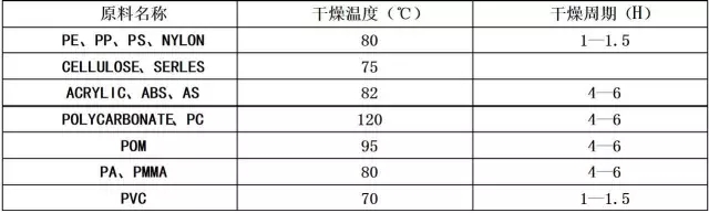 ????????參考“塑料原料干燥溫度參考表”結(jié)合實際經(jīng)驗,酌情調(diào)節(jié)電子溫控儀,使雙金屬溫度計反應的溫度與實際溫度相符。