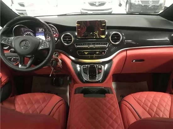 ????????又比如,以下這款2019款奔馳V250也在內飾上彰顯創新個性潮流。正副駕座的后背上,不只是配備了折疊小桌板,更是添加了兩個獨立Ipad;后電動窗簾系統,搭配淺色的窗簾和其他內飾裝飾,燈光照明,氛圍燈飾環繞,營造自然舒適的駕乘環境。
