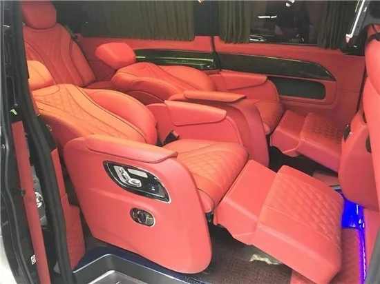 ????????另外,寬大的航空椅配上邁巴赫舒適頭枕,座椅帶有8向的電動調節,超長的腿拖和按摩功能。奔馳V250后排的座椅被還設計成可以電動放平成一張床,可謂高端實用又有個性。