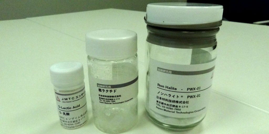 ????????然后,關(guān)于用于醫(yī)療應(yīng)用的生物可吸收材料和可生物降解樹脂,JMTC已經(jīng)建立了具有高光學(xué)純度的D-乳酸的工業(yè)生產(chǎn)技術(shù)。D-乳酸是聚(乳酸-共-羥基乙酸)(PLGA)和聚乳酸(PLA)等的原料。基于AGC公司開發(fā)的基因改造技術(shù)(TYO:5201),JMTC已經(jīng)建立了一種從植物中獲得這種D-乳酸的小批量生產(chǎn)方法。
