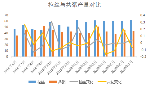 ????????拉絲價(jià)格走高除受期貨拉漲以外,粉料價(jià)格高位仍在支撐粒料價(jià)格高位不下的原因,裝置排產(chǎn)來(lái)看,部分停車裝置再現(xiàn)利好,新投產(chǎn)裝置量產(chǎn)偏少,拉絲體量較大,且多為快消品,剛需存在。