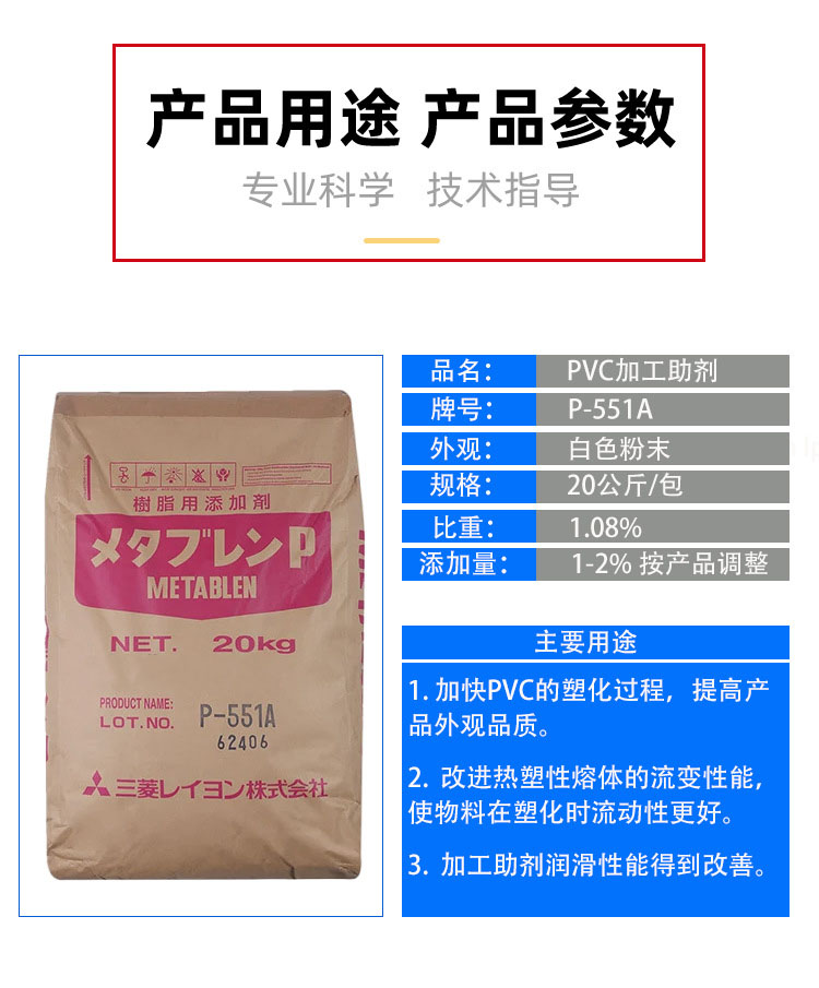 • P-551A日本三菱ACR增韌劑pvc助劑抗沖擊劑樹脂改性劑 物性表, P-551A日本三菱ACR增韌劑pvc助劑抗沖擊劑樹脂改性劑 產品參數,P-551A日本三菱ACR增韌劑pvc助劑抗沖擊劑樹脂改性劑 性能表,P-551A日本三菱ACR增韌劑pvc助劑抗沖擊劑樹脂改性劑 出廠報告, MSDS,, 物質安全資料表, UL黃卡,{ SGS報告, RoHS, 食品級認證, NSF飲用水標準, 產品資料, 產品性能, 出廠報告, 原廠原包, 代理商, 熱變形溫度, 熔指數, 流動系數, 抗沖擊性能、沖擊強度, 低溫韌性、低溫抗沖擊性能, 熔體流動系數、熔體流動速率, 加工工藝、加工參數、加工溫度, 歐盟RoHS 德國FDA 美國FDA 日本FDA