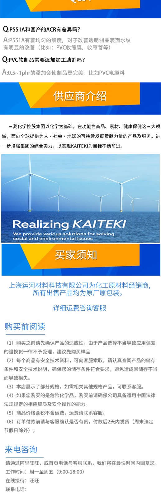 • 如果您對我們的P-551A日本三菱ACR增韌劑pvc助劑抗沖擊劑樹脂改性劑有任何疑問,或者想索取P-551A日本三菱ACR增韌劑pvc助劑抗沖擊劑樹脂改性劑物性表datasheet、物質安全資料證書MSDS、ROHS檢驗報告、SGS報告、REACH環保證明、FDA證明、EU法規證明、UL證書及出廠證明COC/COA報告等,敬請撥打我們的服務熱線 19279864570,或者點擊 聯系我們 給我們留言。