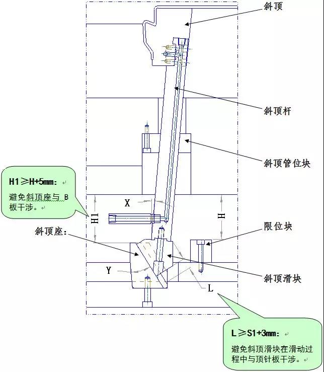 ????????4、H1≥H+5mm,避免斜頂墊塊與B板干涉。